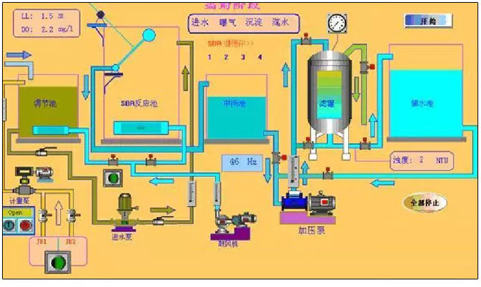 污水處理工藝流程組態(tài)圖