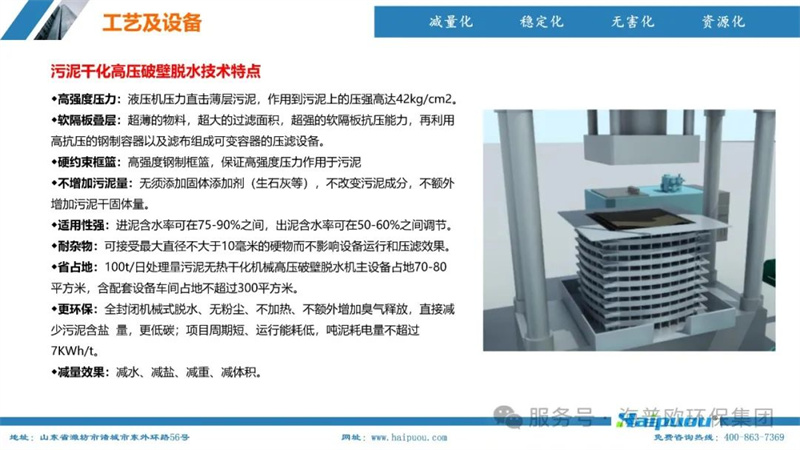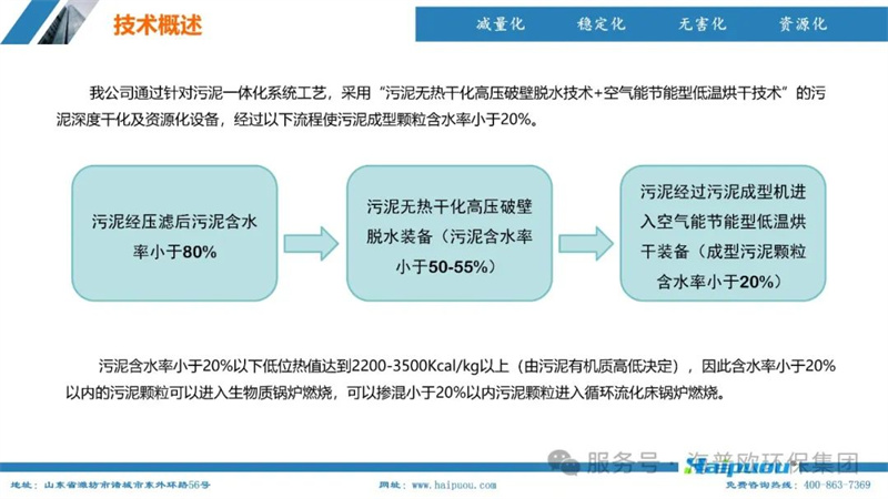 海普歐環(huán)保的核心技術(shù)——污泥深度干化及資源化設(shè)備,采用了“污泥無熱干化高壓破壁脫水技術(shù)+空氣能節(jié)能型低溫烘干技術(shù)”。這一技術(shù)組合能夠?qū)⒑省?5%的物料烘干至含水率20%以下,為污泥的后續(xù)資源化利用提供了堅實的技術(shù)支撐。其中,污泥無熱干化高壓破壁脫水技術(shù)通過自主研發(fā)的高壓破壁泵,在污泥輸送過程中完成壓力破壁,破壞污泥中微生物細胞的細胞膜,使內(nèi)部小分子滲出變?yōu)橥獠克,增加污泥的流動性,便于脫水。而空氣能?jié)能型低溫烘干技術(shù)則利用低溫蒸發(fā)熱泵原理,將濕熱空氣降溫脫濕,同時冷媒吸收水蒸氣的凝結(jié)熱,通過壓縮機聚集后再由冷凝器加熱脫濕后的空氣,實現(xiàn)熱能的循環(huán)利用,具有節(jié)能環(huán)保、安全高效、智慧化程度高等特點
