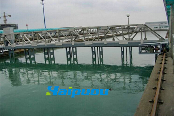 本設(shè)備由四點支撐行走大梁橫跨在平流式沉淀池上,雙邊驅(qū)動,池兩邊均鋪設(shè)鋼軌,從池的一端運行到池子的另一端,邊行走邊吸泥,撞到行程控制,折返行走,回程吸泥,完成一個工作周期。